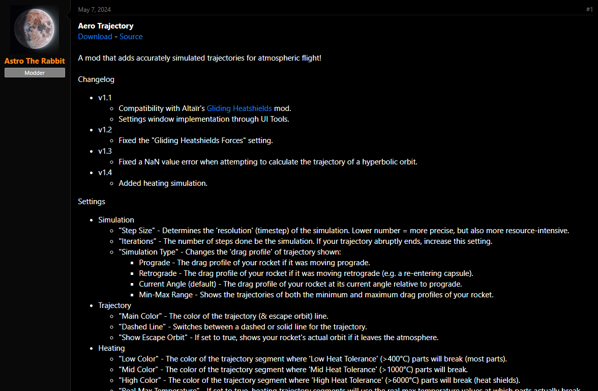 Lets use Astro the Rabbit's Aero Trajectory Mod as Example