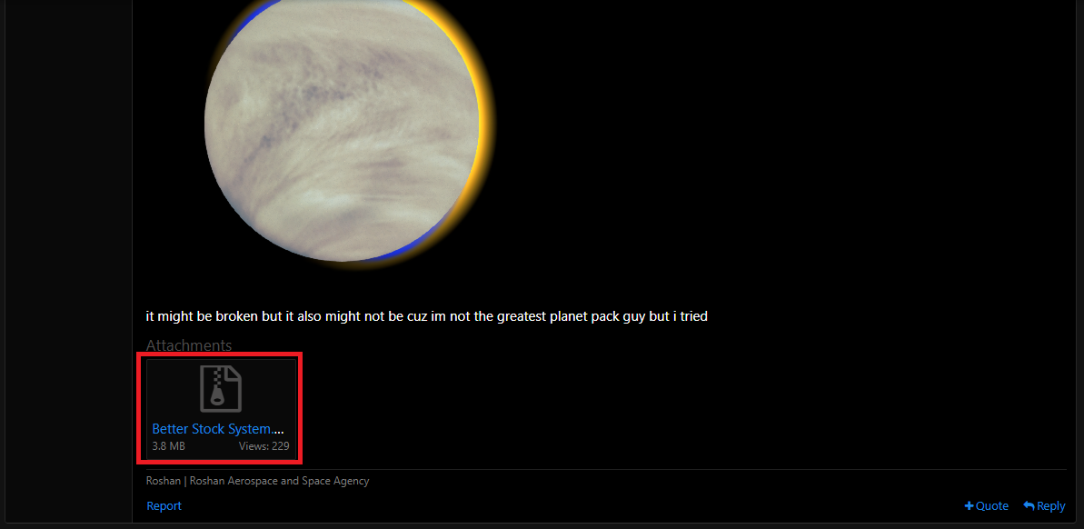 This guide demonstrates the installation process using Better Stock System as an example. Most Planet Packs include a downloadable attachment within their forum post, as shown below.