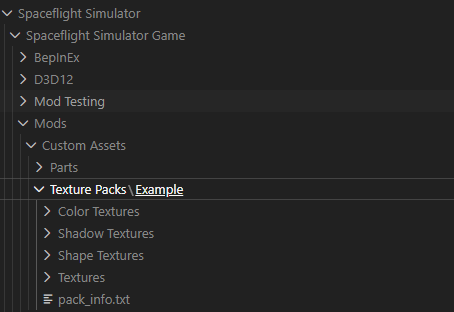 Examplefolder and rename it to your desired mod name, e.g.,My First Texture Mod. - Inside your new mod folder, you'll find 4 main subfolders and a file called pack_info.txt