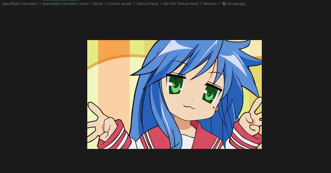 So you saw this cool rocket with custom textures and you want to make your own? This quickstart guide will walk you through the basics of creating and applying texture mods in Spaceflight Simulator (SFS). This guide is for both PC (and mobile users, in the 1.6.00.0 beta). Note that for mobile users, you need the expansions and the beta version of SFS 1.6 to use texture mods.